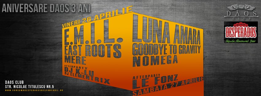 Daos împlinește trei ani de la deschidere. De trei ani, o fostă hală industrială a fost transformată în clubul unde au venit în fața publicului nume internaționale de pe scena rock, electronică și nu numai. Petrecerea aniversară durează două zile.