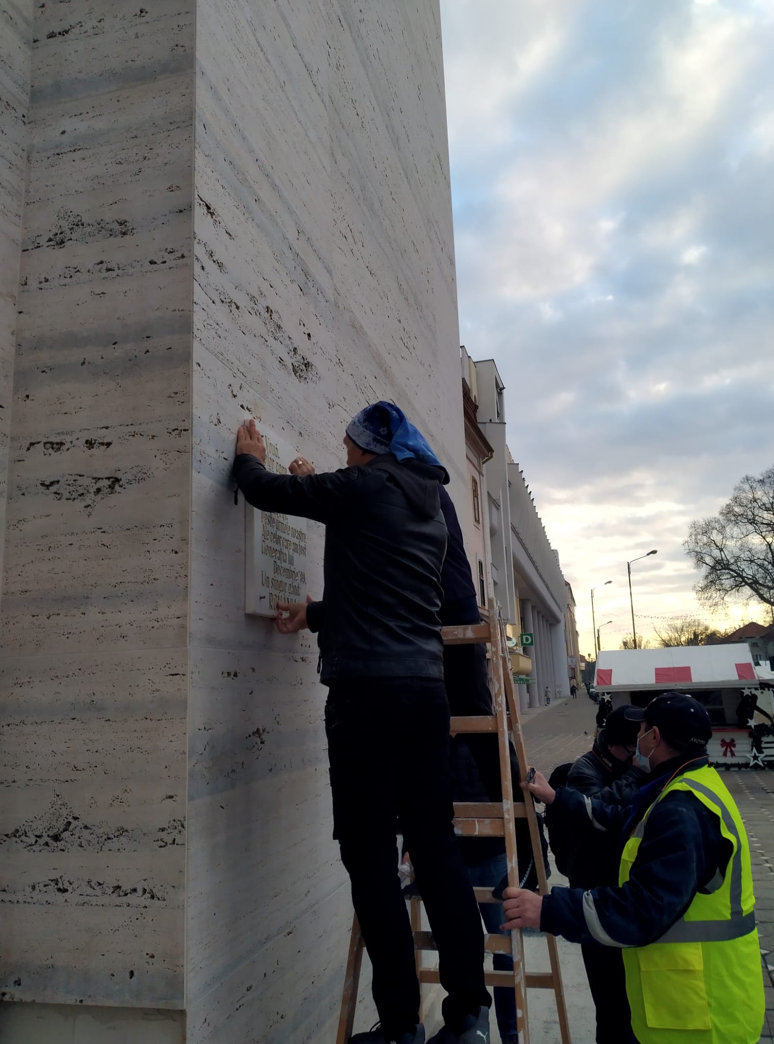 O placă de marmură a fost din nou amplasată pe fațada Operei din Timișoara. A fost finalizată placarea cu travertin după reabilitarea fațadei clădirii.