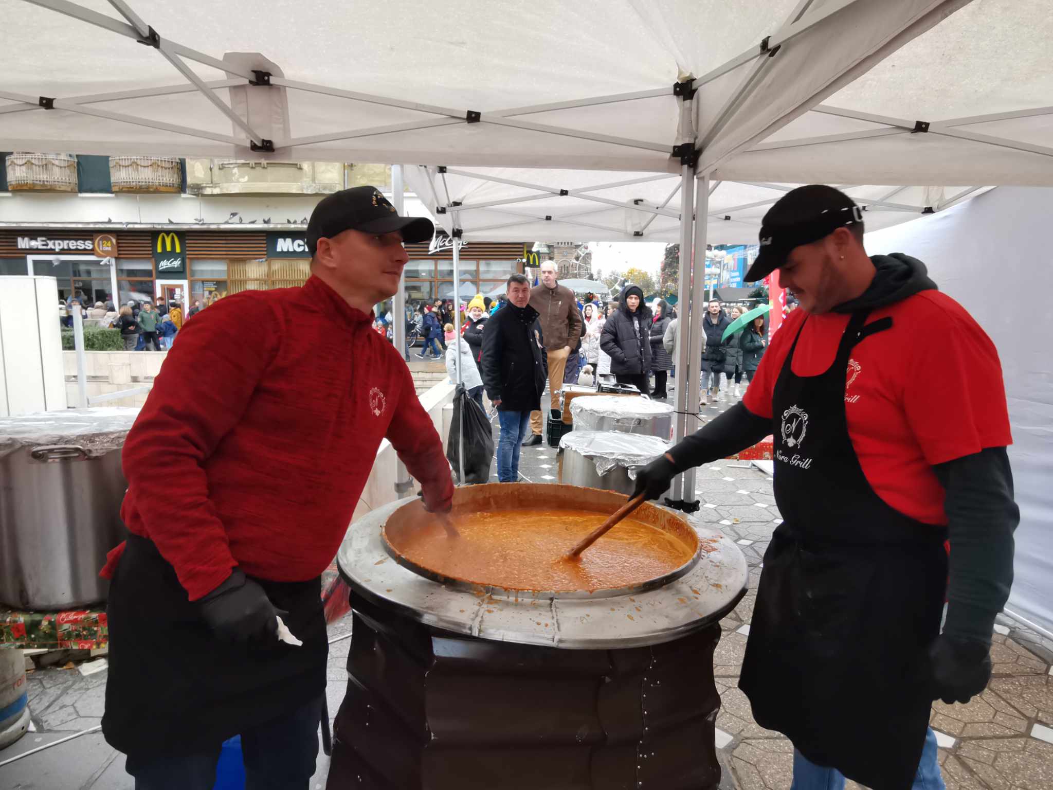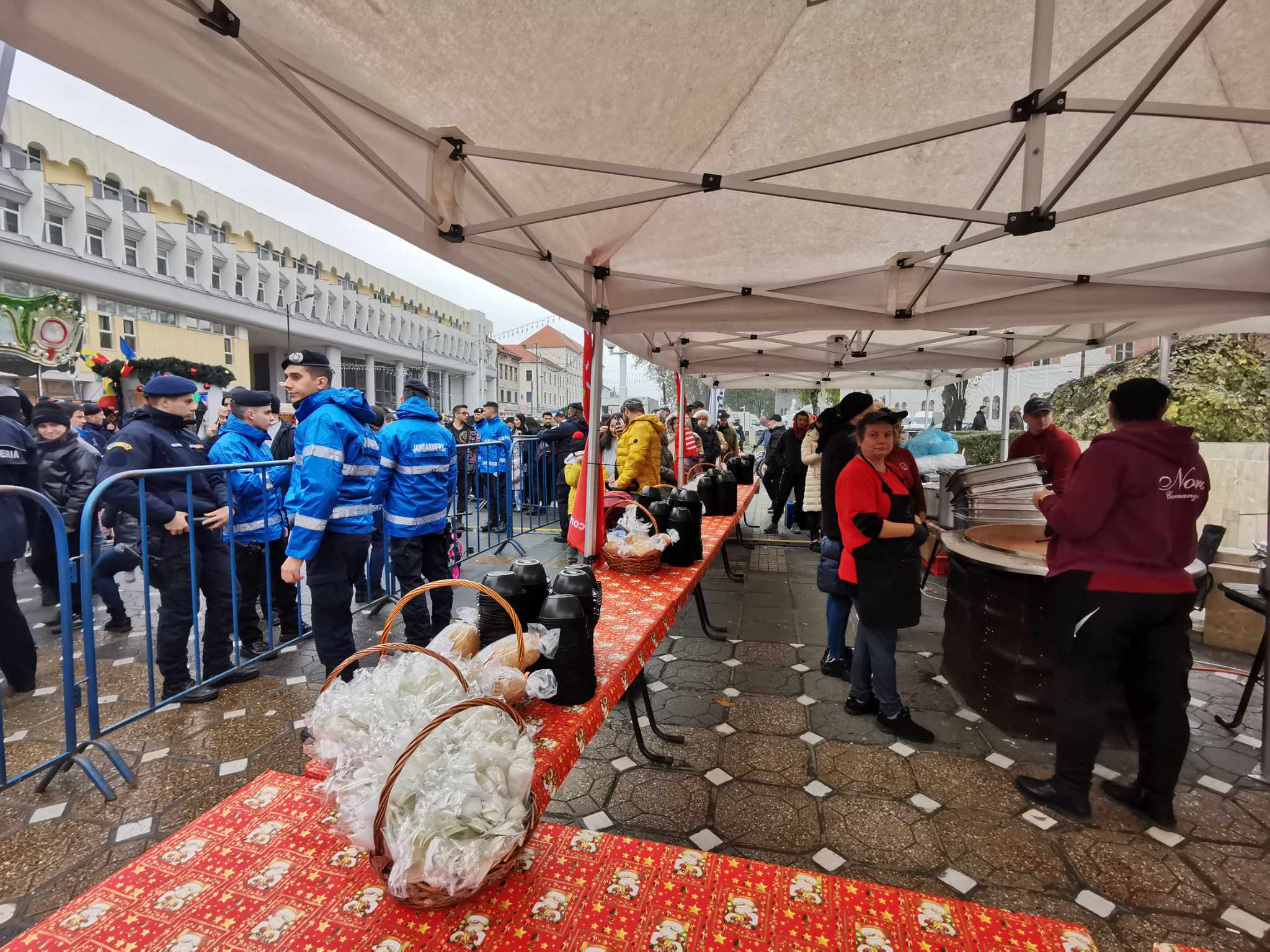 Autoritățile locale au găsit metoda ideală de a oferi doritorilor fasole de 1 Decembrie, așa cum e tradiția, e drept mai mult în alte părți. În fața scenei ridicate pentru evenimentele din programul Târgului de Crăciun s-a instalat o adevărată bucătărie de campanie și s-au preparat câteva mii de porții de asemenea fasole, în cadrul unui eveniment intitulat ”Prânz pentru pace”.