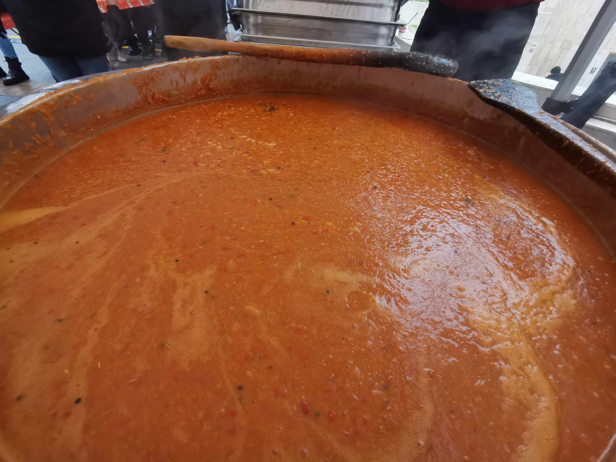 De fapt, cazanul cu fasole a fost oferit în cadrul proiectului Culinaria Banatica, unul care a beneficiat de susținere prin proiectul Timișoara 2023. Așadar, după parada din fața Catedralei toată lumea s-a mutat în fața sau pe scena din fața Operei și a stat la rând pentru o porție de fasole, cu cârnăciori.