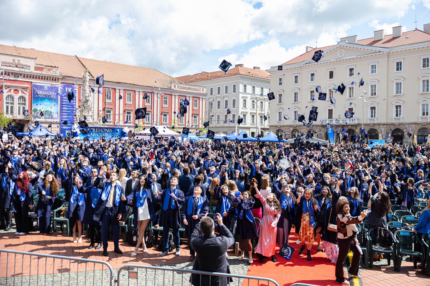 Așa cum e tradiția de câțiva ani, și în 2025 ceremonia de absolvire a cursurilor la licență sau la masterat de către studenții Universității de Vest s-a desfășurat în cadrul oferit de Piața Libertății din Timișoara. Părinți, bunici, absolvenți, profesori, toți cu emoții, au luat parte la ceremonia de absolvire.