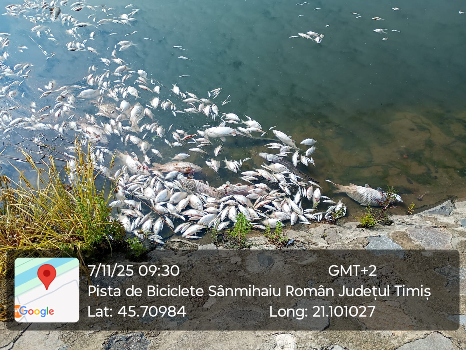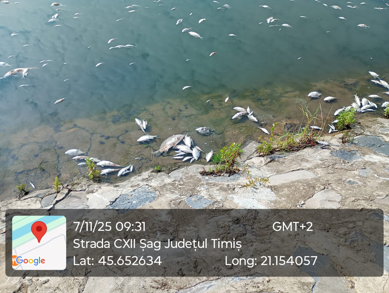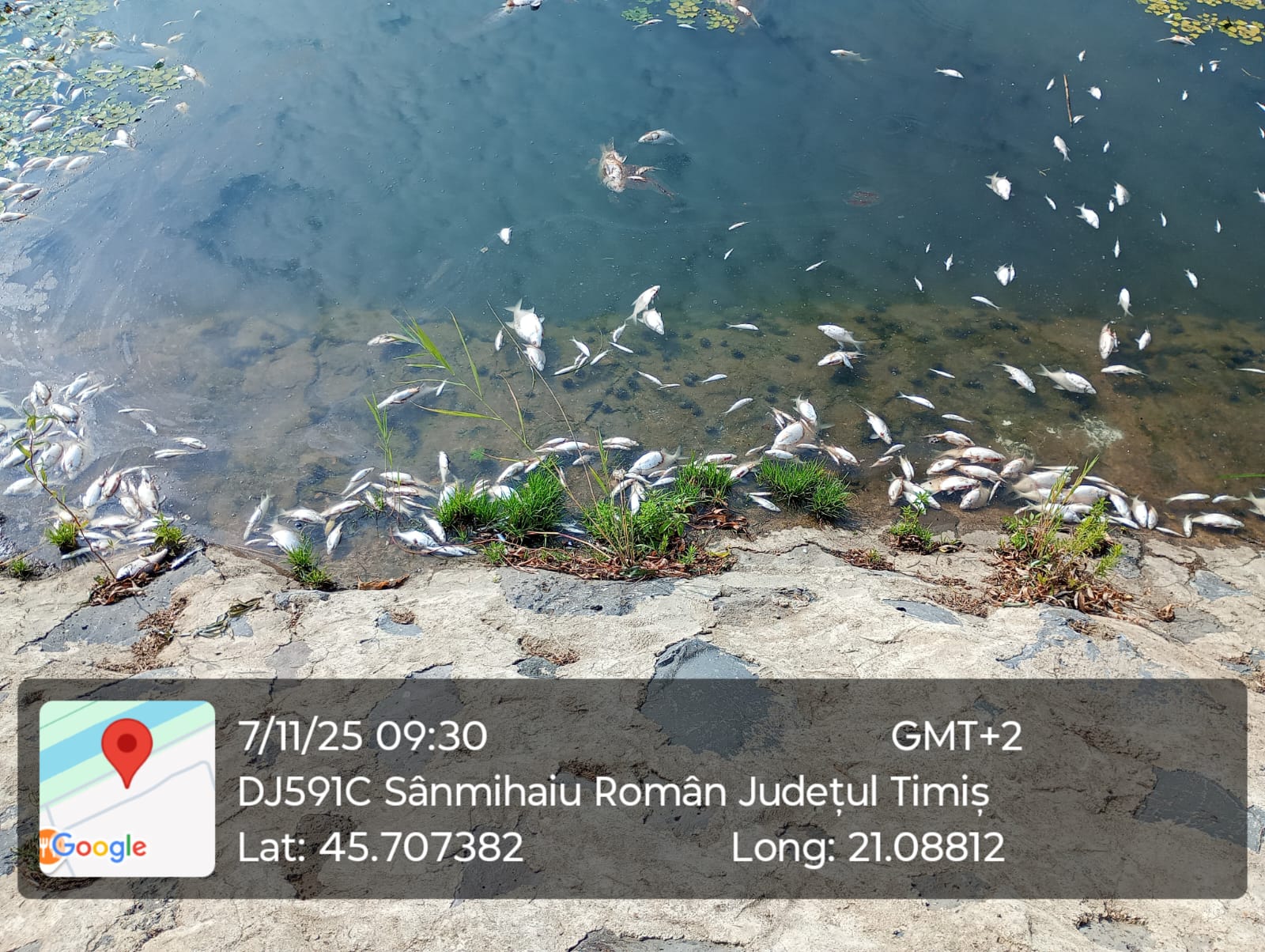 ”Fenomenul mortalității piscicole în aval de stația de epurare Timișoara apare de fiecare dată când ne confruntăm cu precipitații de mare intensitate, suprapuse cu temperaturi ridicate ale aerului și apei. Reprezentanții ABA Banat/SGA Timiș acționează pentru gestionarea incidentului de mediu, colaborând cu operatorul regional de apă-canal și cu celelalte instituții pentru strângerea și neutralizarea faunei piscicole moarte și pentru monitorizarea calității apei până în secțiunea de frontieră Otelec”, mai transmit cei de la ABA Banat.