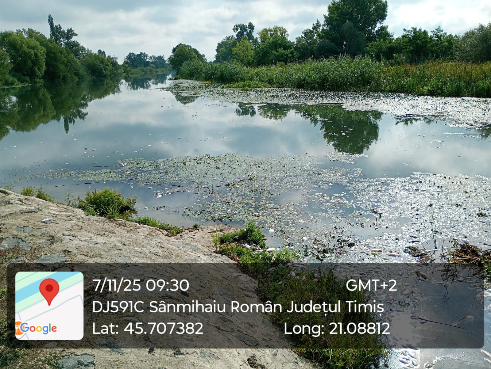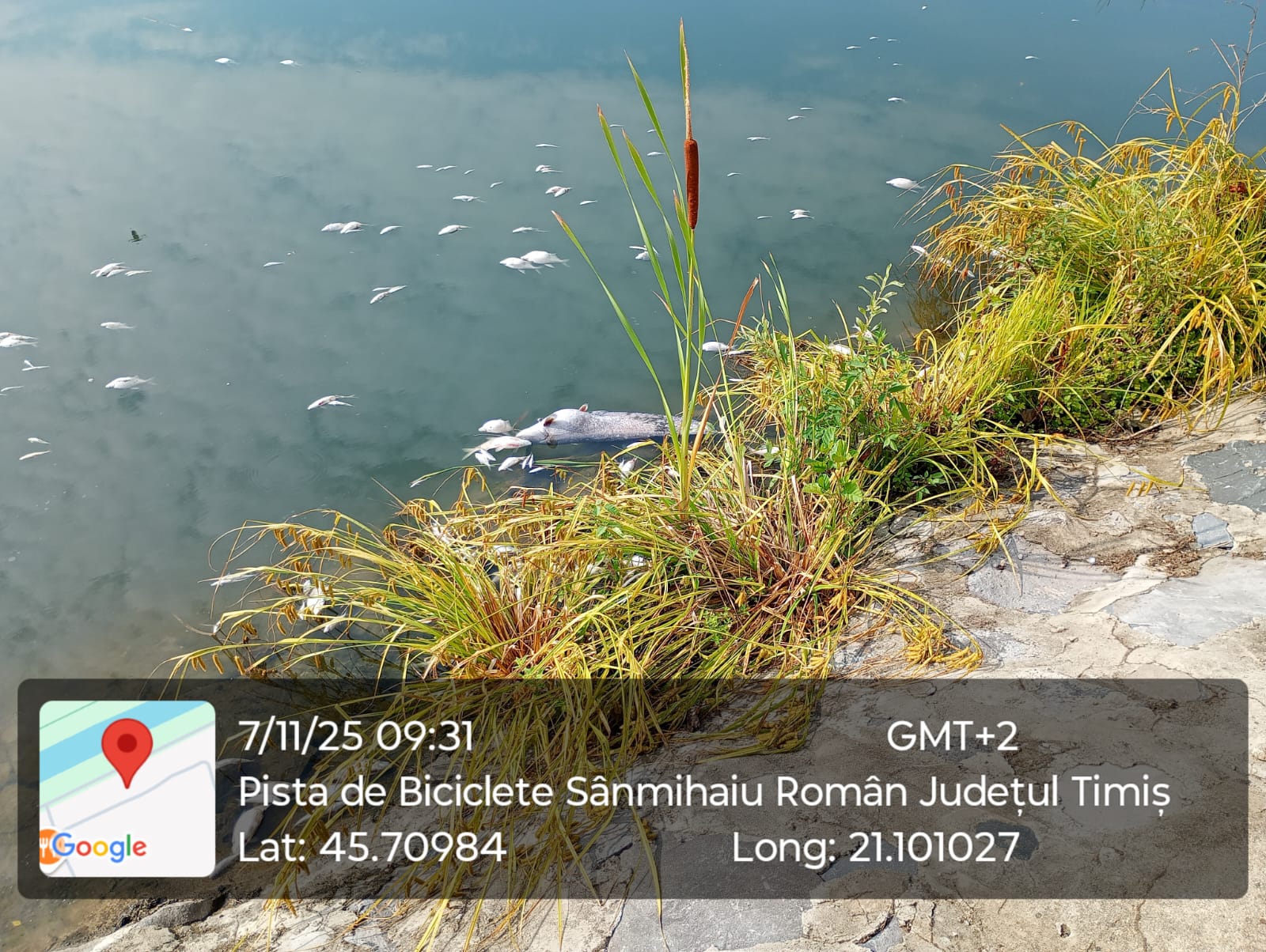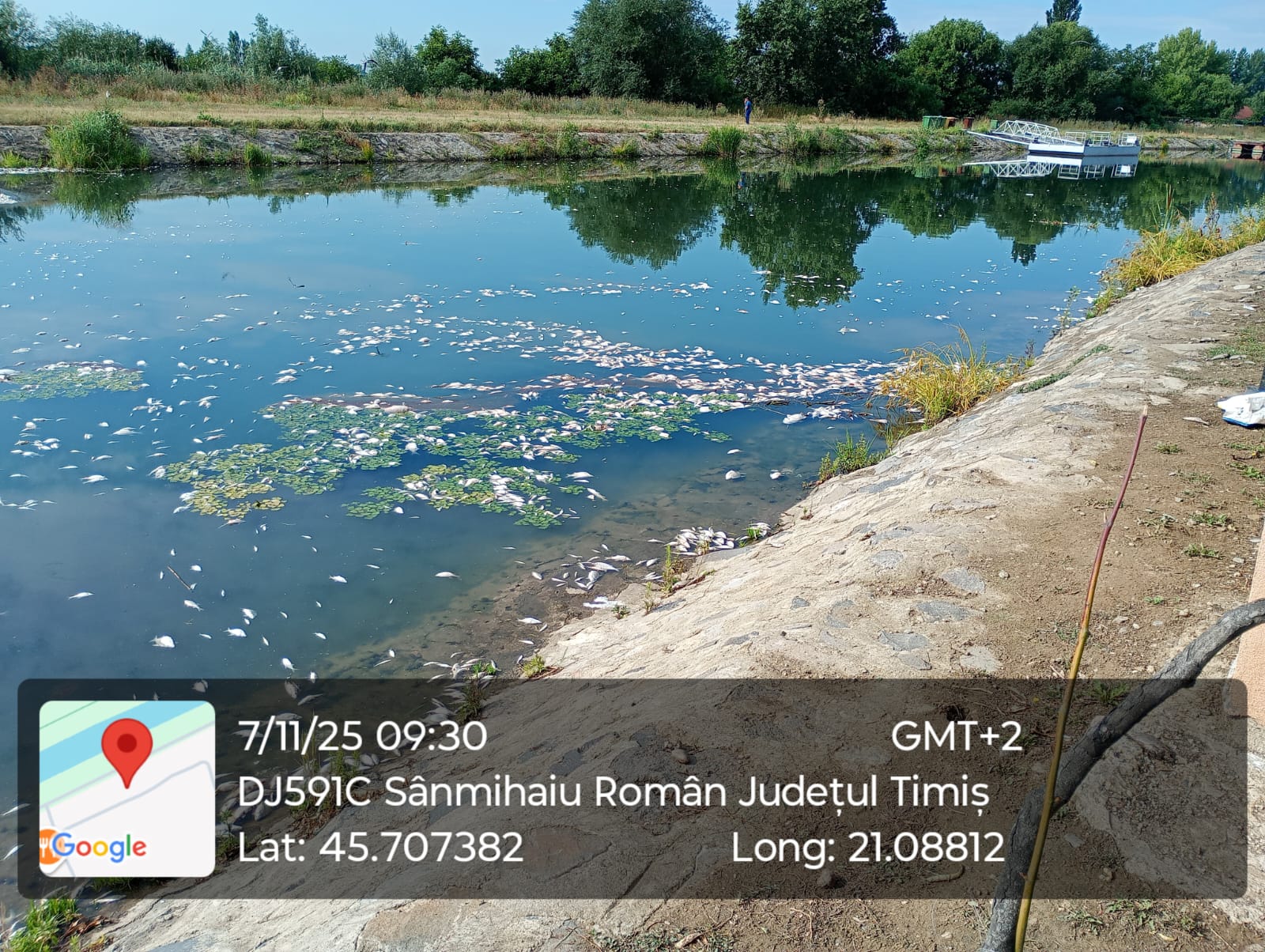 ”Fenomenul mortalității piscicole în aval de stația de epurare Timișoara apare de fiecare dată când ne confruntăm cu precipitații de mare intensitate, suprapuse cu temperaturi ridicate ale aerului și apei. Reprezentanții ABA Banat/SGA Timiș acționează pentru gestionarea incidentului de mediu, colaborând cu operatorul regional de apă-canal și cu celelalte instituții pentru strângerea și neutralizarea faunei piscicole moarte și pentru monitorizarea calității apei până în secțiunea de frontieră Otelec”, mai transmit cei de la ABA Banat.